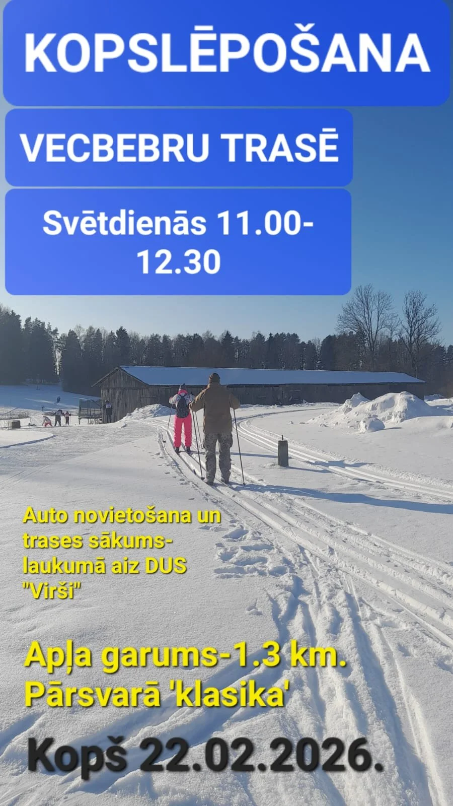 No 22.februāra svētdienās Vecbebru trasē notiek slēpošana kopā ar Arti Zvejnieku.