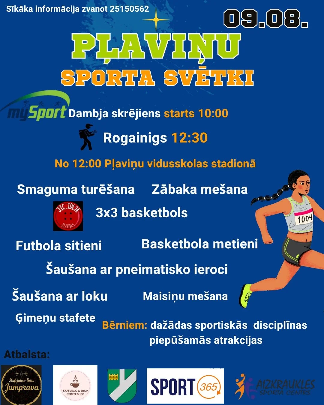 Pļaviņu sporta svētki Saturday, August 9, 2025 9:00 AM 6:00 PM Google Calendar ICS 9. augustā pulksten 09.00, Pļaviņu pilsētas teritorijā – Pļaviņu sporta svētki. Svētki tiek pārcelti no 12.jūlija.NolikumsNolikums