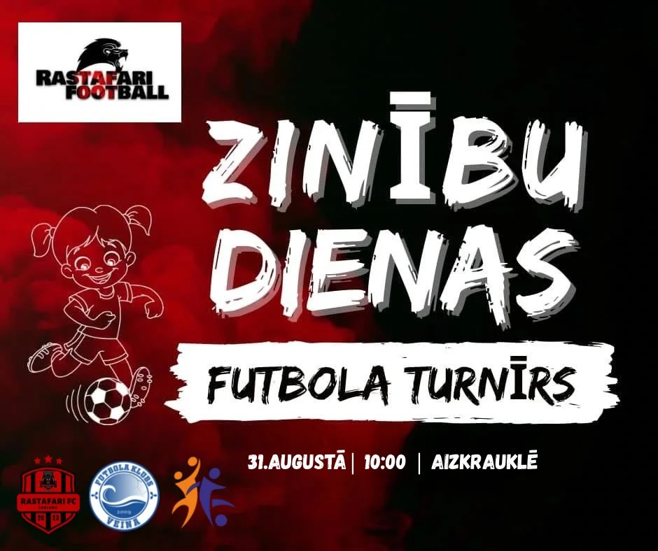 31.08. 2025. pulksten 10:00 Aizkraukles pilsētas stadionā notiks "Zinību Dienas" turnīrs futbolā bērniem.