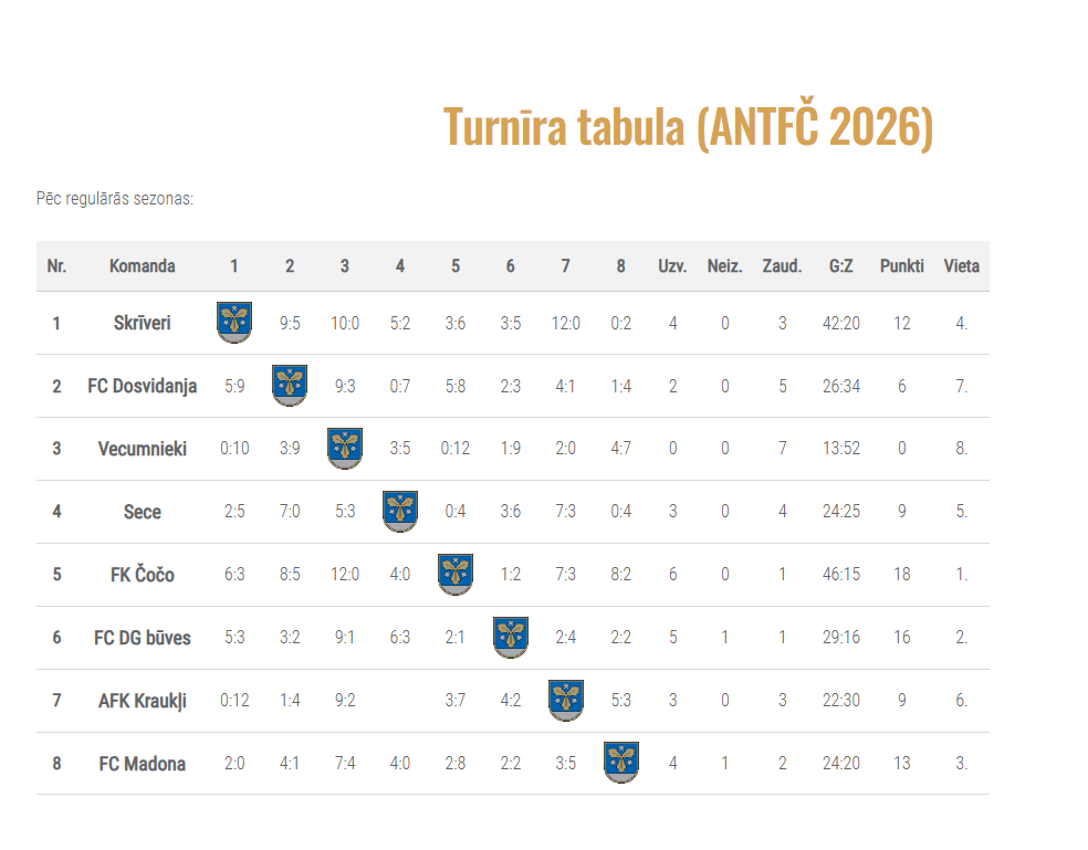 15. februārī Aizkraukles novada sporta centrā noslēdzās Aizkraukles novada telpu futbola čempionāta 2026 4.posms. 22. februārī pulksten 16.00 Aizkraukles novada sporta centrā (Lāčplēša 21B) notiks čempionāta 5.posms un apbalvošana.