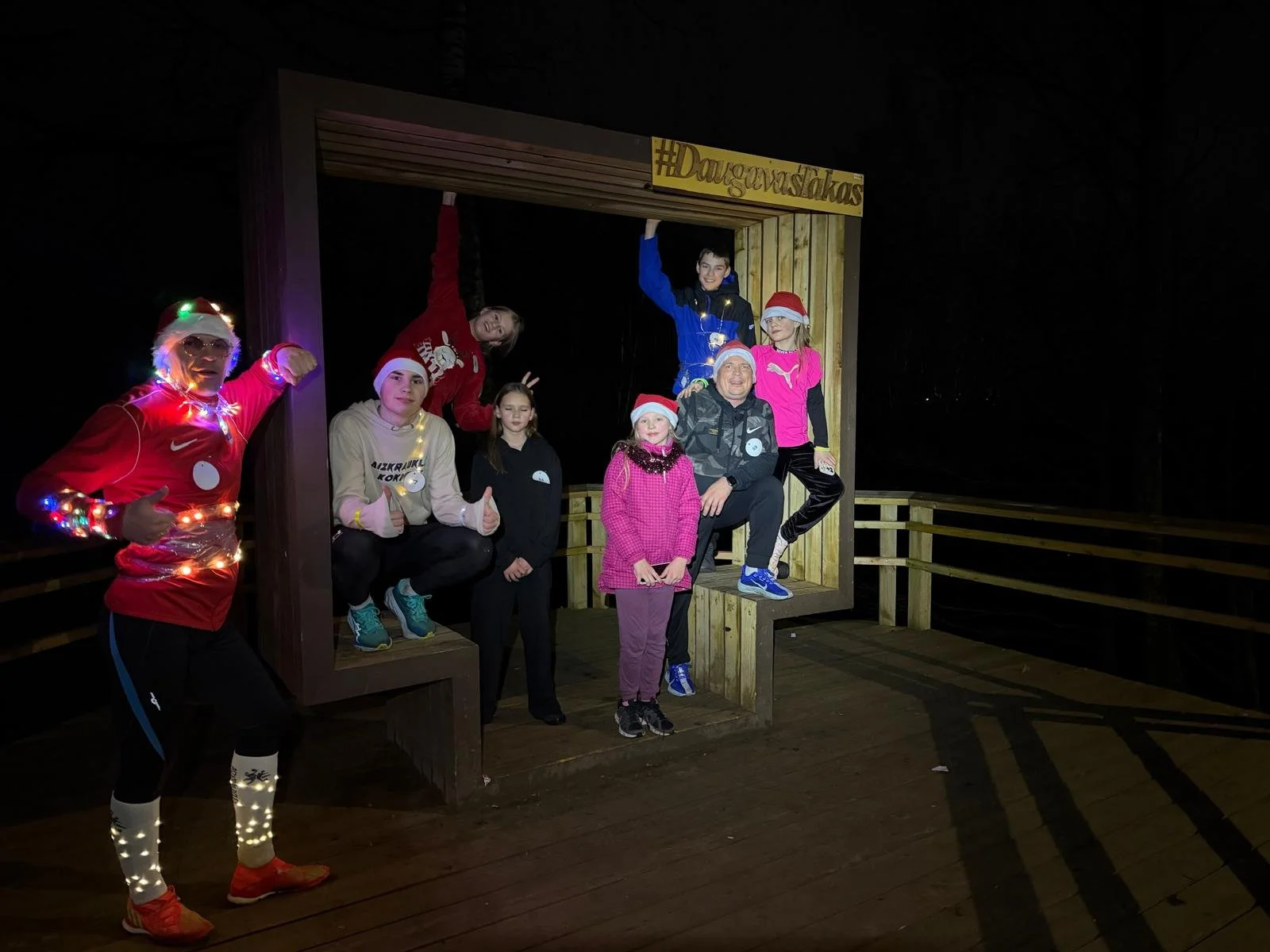 Lauska aplī devās 12 dalībnieki. Šis jau bija garāks aplis. Maršruts veda uz pilsētas kultūras namu, tad pa Stadiona ielu gar Daugavu, tad pa ‘baiso’ maršruta posmu caur stadiona austrumu gala meža takām, tad pa dabas taku līdz slēpošanas aplim, tad uz ‘Kuršiem’ un finišs- pa Gaismas ielu, Spīdolas ielu līdz svētku Eglei.